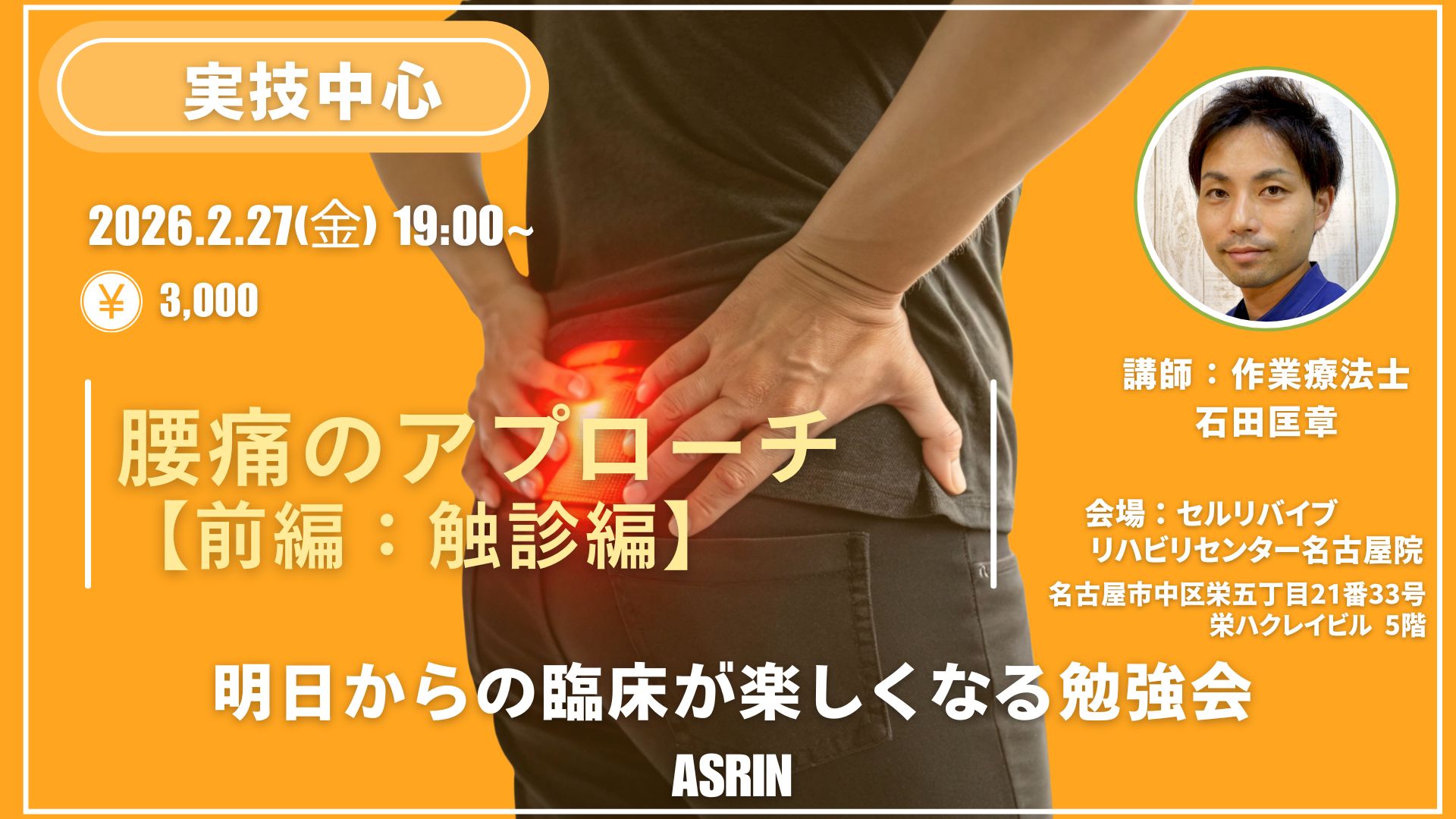 腰痛に関与する軟部組織(特に胸腰筋膜・多裂筋)の触り分けと、圧痛・硬結の評価ができる。